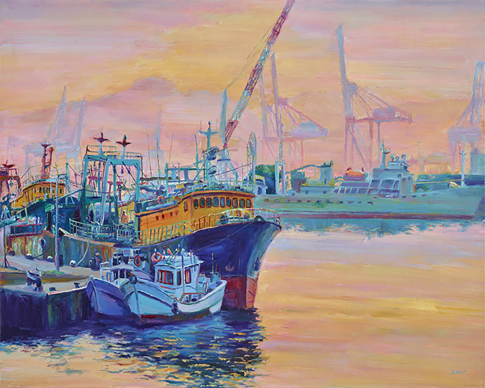在黃昏時坐在岸邊看著金光倒映在海面上,美麗的的色彩令人沉醉其中,霞光映照下的漁港景色,船隻靜泊,海面閃耀著溫柔光彩。每每令我無法轉移視線,久久無法離去。