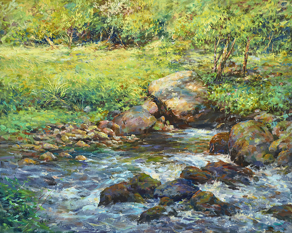 草地映照溪水,光影交錯中透露溫暖,提醒著我們,生命中總有溫柔的角落。